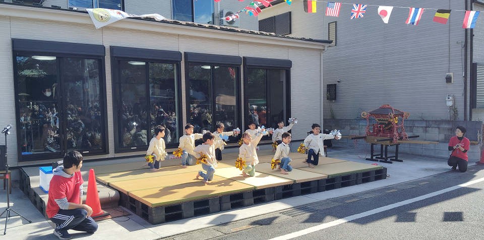 2025.11.19地域のお祭りに参加しました!地域のお祭りに参加し、年長児がダンスとけん玉を披露しました!音楽が流れると堂々とダンスを踊り、けん玉も大成功すると大きな歓声があがりました。地域の方々からいただいた拍手や応援の声に、子どもたちの顔も満面の笑みに。地域の皆さまの温かさに触れ、心もぽかぽかの一日となりました!